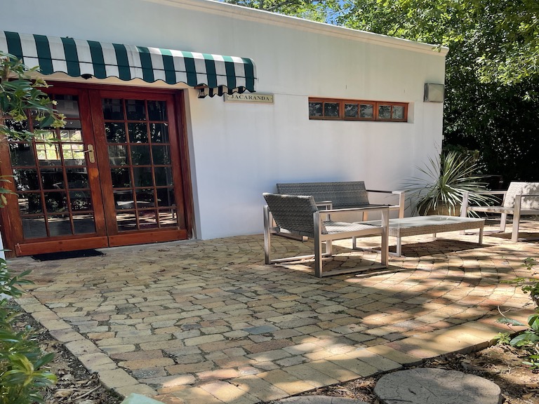 Jacaranda is a 40 sq. m studio apartment with an open plan bedroom and living area. It is situated on the main estate under the big Oak Trees, making the small patio area a peaceful and shaded spot to relax in. It has modern decor and is ideally suited to couples or those looking for a base while they explore the area.