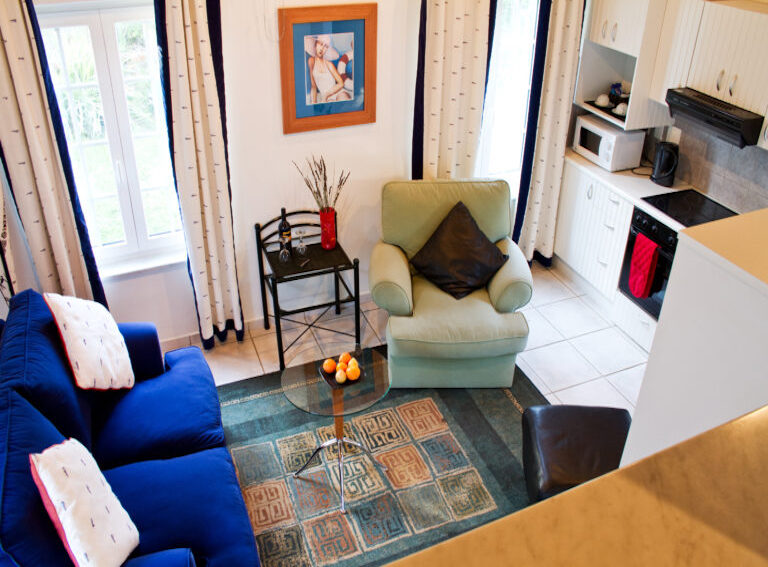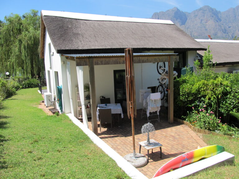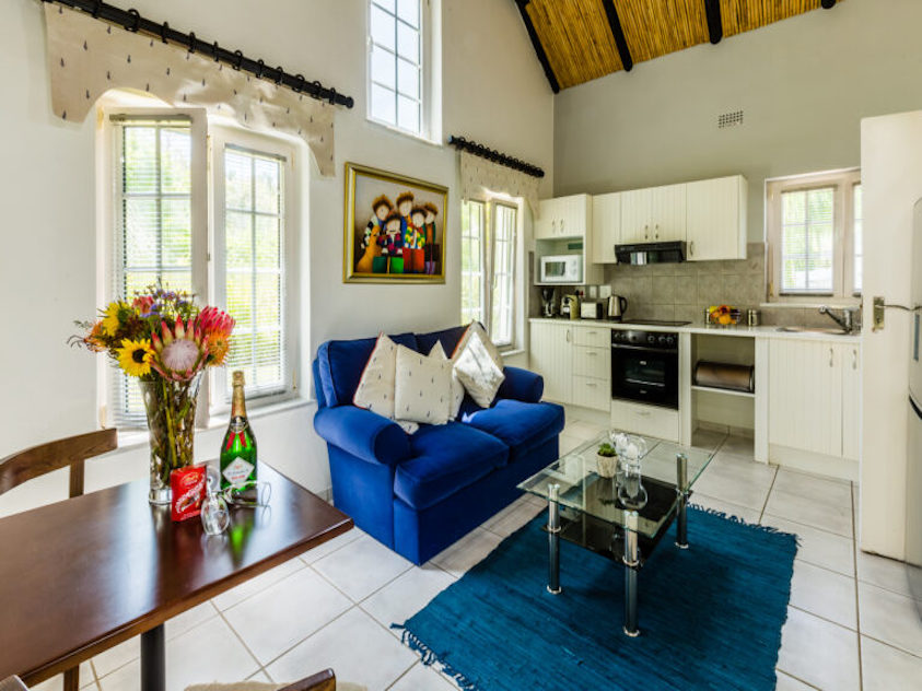 Lemon Tree is a cosy 54 sq. m cottage, designed over multiple levels with a 15 sq. m patio area. The traditional Cape Dutch thatch roof creates a quaint and nostalgic charm.